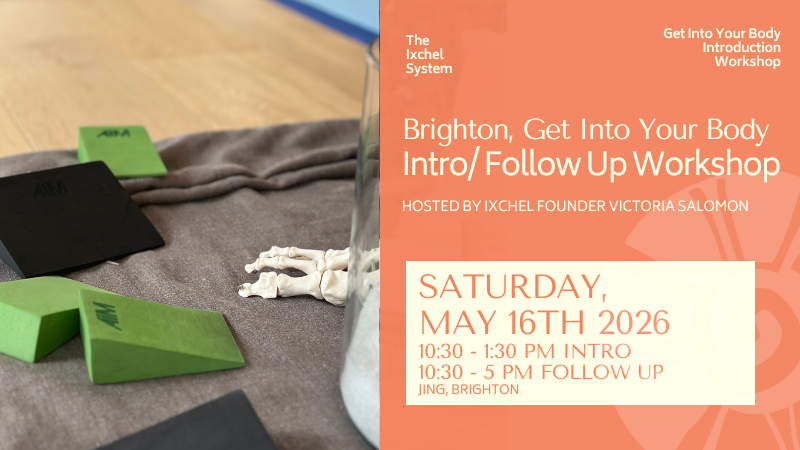 Join Victoria Salomon, creator of The Ixchel System with her team, for a workshop in Brighton on May 16th, where you’ll get into the power of your bones and their capacity to switch on an immediate experience of safety, connection and stability.